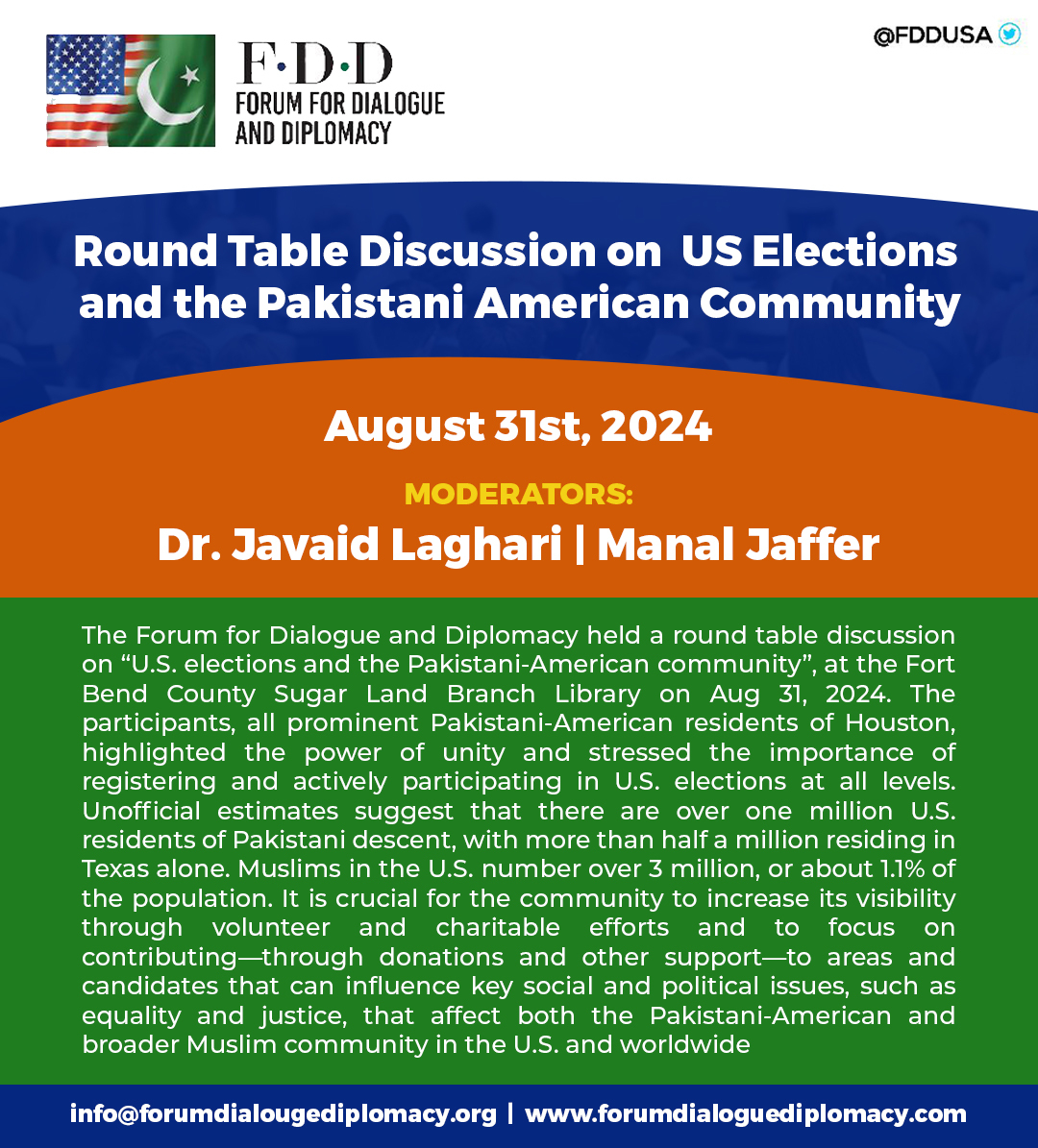 The Forum for Dialogue and Democracy met on March 31, 2026 in Houston TX, to reflect on the rising tensions in the Middle East following attacks on Iran by Israel and the United States, and Iran’s subsequent response, including strikes on several Gulf countries and U.S. bases from which those attacks were launched.